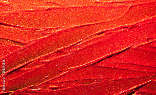 © tatyanarow, Fototapeta premium Glitter lipstick smeard background classic red