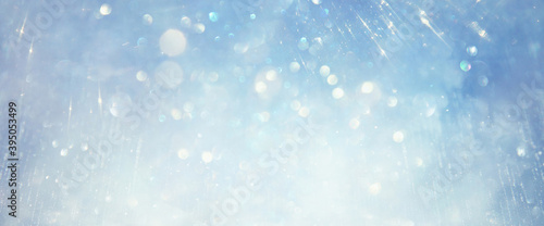 Fototapeta premium glitter vintage lights background. silver, blue and white. de-focused