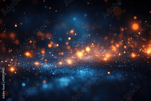 Fototapeta premium Glittering blue and orange bokeh lights on dark background.