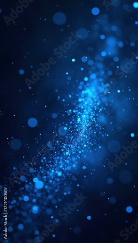 Fototapeta premium Glittering blue particles suspended in a dark starry night, abstract, cosmic