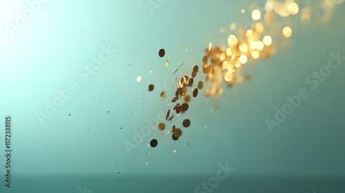 Fototapeta premium Glittering Gold Particles Falling in a Soft Turquoise Background