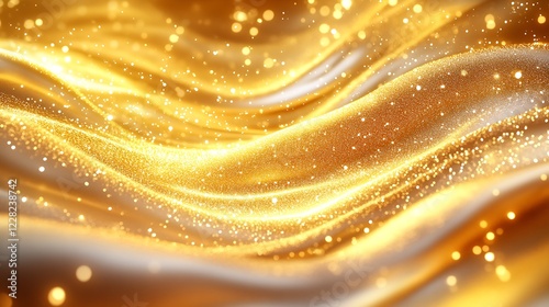 Obraz premium Glittering Golden Abstract Waves with Sparkling Particles Creating Magical...