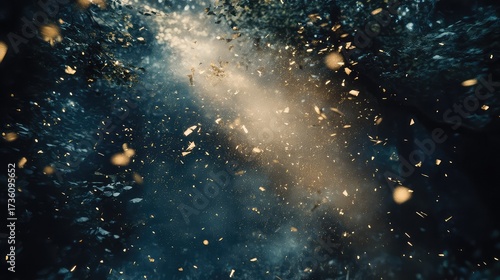 Obraz premium Glittering magic particles exploding in mysterious dark light
