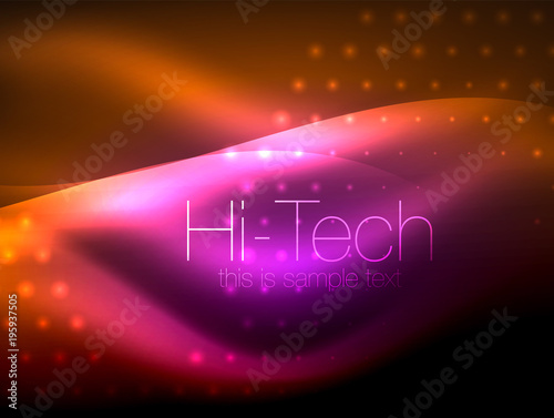 Fototapeta premium Glittering neon glowin wave, techno modern art abstract background, magical shiny template
