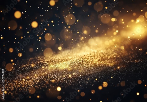 © ANUAR, Naklejka premium Glittering Particles and Golden Bokeh Create an Enchanting Abstract Background for Celebrations, Events, and Creative Projects