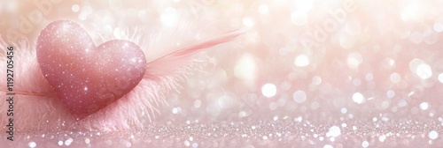© pibi37.studio, Fototapeta premium Glittering pink heart with feather on sparkling background for romantic theme