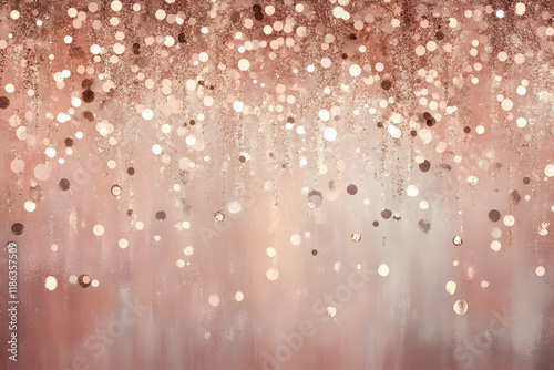 Fototapeta premium Glittering rose gold particles cascading gently on a muted blush pink and...