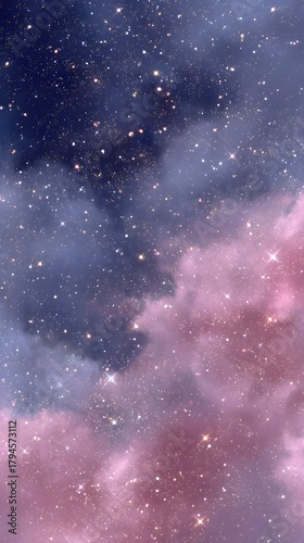 Fototapeta premium glittering stars in the night sky, surrounded by pink clouds