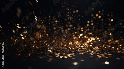 Naklejka premium Glittery Golden Particles Floating on Dark Background