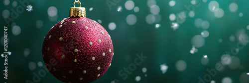 Fototapeta premium Glittery Red Christmas Ornament with Golden Dots