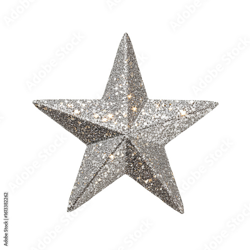 Obraz premium Glittery Silver Star Shape with Sparkle Texture, Isolated on Transparent...