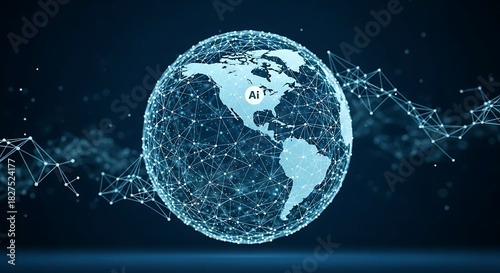 Obraz premium Global Artificial Intelligence Network Connecting the World with Futuristic...