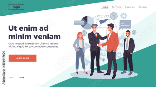 Obraz premium Global business partnership flat illustration. International teamwork,...