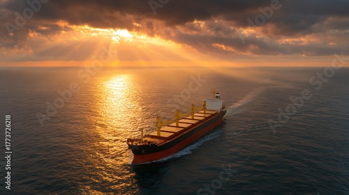 Naklejka premium Global cargo and shipping vessel transporting goods by sea