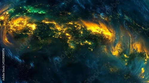 © Guruji, Fototapeta premium Global City Lights from Space: A Stunning Night View