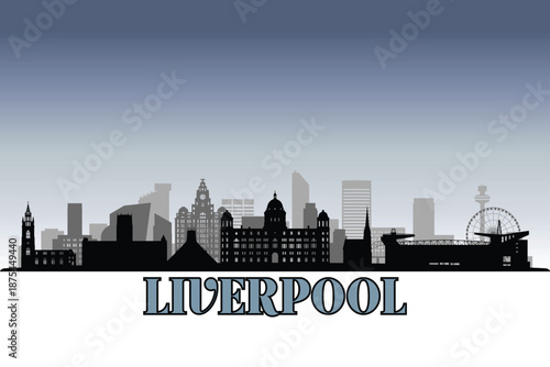 Fototapeta premium Global city Liverpool shown in a detailed vector skyline with grey rainy sky