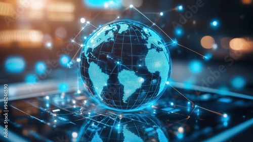 © Piyawat, Obraz premium global connectivity above smartphone