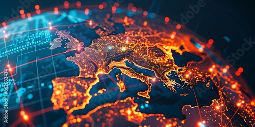 © Jameel, Fototapeta premium Global Connectivity, 3D Render of a Globe with Glowing Network Links