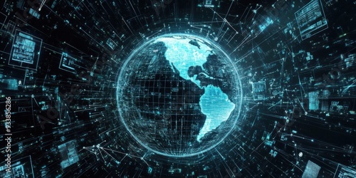 Fototapeta premium Global Connectivity with Digital Earth and Interconnected Networks
