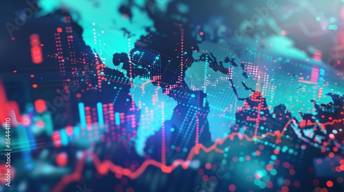 © wikkie, Fototapeta premium Global Crisis Chart on Holographic World Map. generative AI image