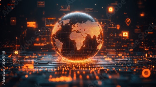 © arpln, Obraz premium Global data network, digital earth, glowing circuit board background. Possible use Data visualization, technology