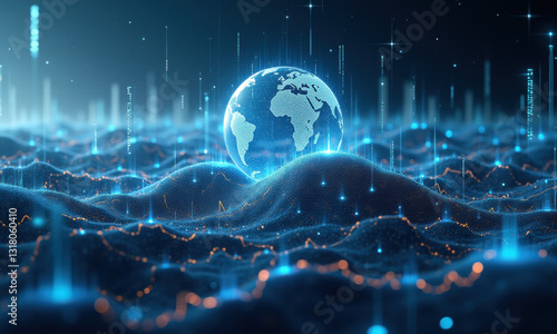 Obraz premium Global Data Network, Digital World, Tech - Futuristic Technology