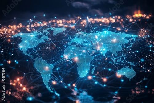 © dendyh7, Fototapeta premium Global Digital Business Network Connection Illustration created with Generative AI