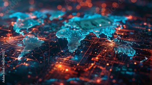 © Sandris Veveris, Fototapeta premium Global Digital Finance Network with Neon Lights