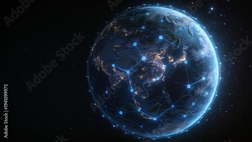 © 선호 최, Fototapeta premium global digital network connection over planet earth at night from space