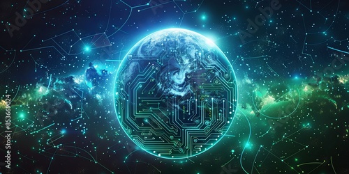 © gen_pick, Obraz premium Global Digital Network Connectivity Over Earth