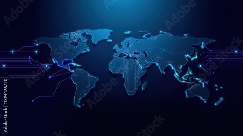 © ahmad, Obraz premium Global digital network map.