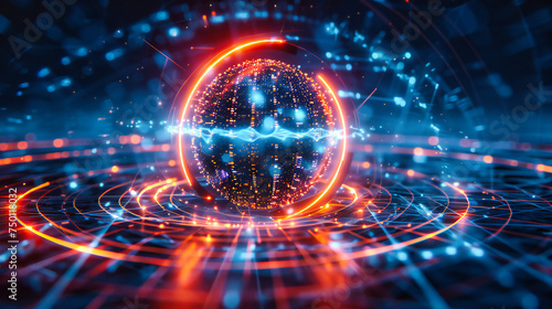 Obraz premium Global digital technology concept, futuristic networking and internet...