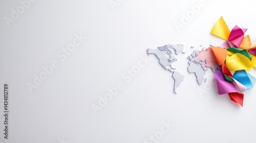 © PAPAHJAHATZ, Obraz premium Global diversity. Colorful paper pinwheels surrounding a world map