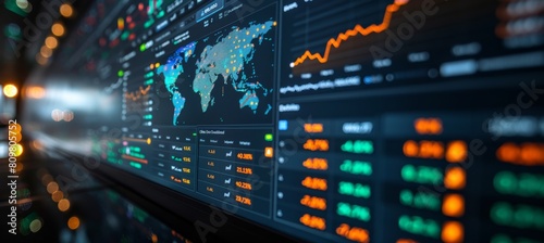 © MOMO, Obraz premium Global financial data and analytics display screen.