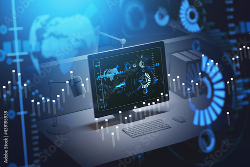 © ImageFlow, Naklejka premium Global immersive financial interface background, computer screen