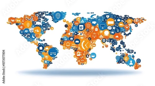 Fototapeta premium Global internet concept in corporate setting, digital application marketing icons, technology-driven workspace