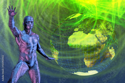© rolffimages, Fototapeta premium Global internet with robot Some elements provided courtesy of NASA