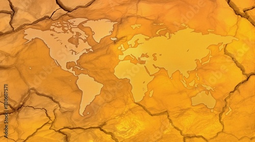 Naklejka premium Global Map on a Cracked, Golden Surface Depicting Earth's Continents
