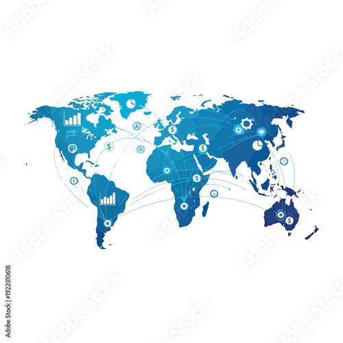 © Pokimeri, Obraz premium Global Map with Data Visualization Icons.