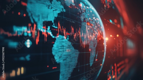 Fototapeta premium Global market data visualized on a digital world map with fluctuating stock...