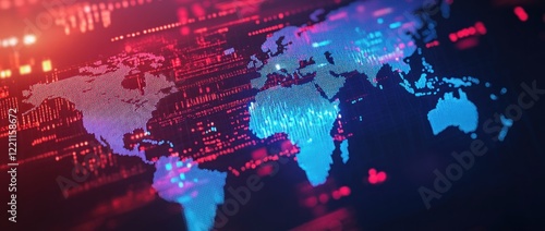 © BISMILAH, Obraz premium Global Network: A Digital World Map Visualization