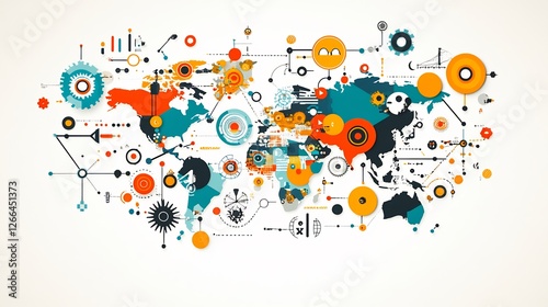 © heinng, Obraz premium Global Network Abstract Colorful Map Illustration. AI Generated