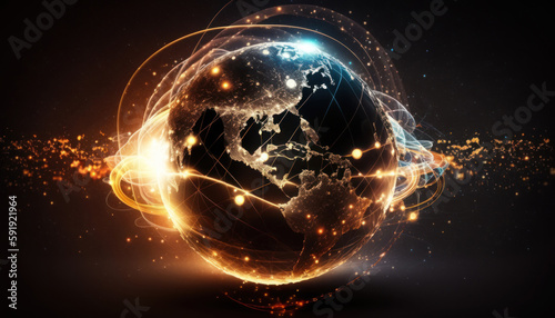 © Yaroslav, Obraz premium Global network connection concept. Big data visualization. Social network communication in the global computer networks. Internet technology. Ai generated