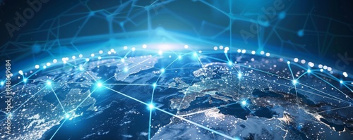 Fototapeta premium Global network connection concept with glowing lines and dots over world map.