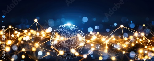 Naklejka premium Global Network Connection Digital Sphere with Binary Code and Illuminated Nodes