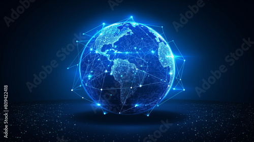 © Wasin Arsasoi, Obraz premium Global network connection social concept. Big data visualization. Internet network communication. Internet and Technology background.