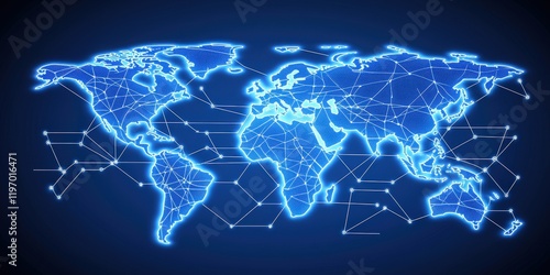 © LeNo, Fototapeta premium Global network connection, world map, digital, technology, background
