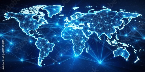 Fototapeta premium Global Network Connection - World Map with Glowing Lines and Dots, Network, Connectivity, Data, Global Network, connection, digital