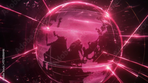 © Aliando, Obraz premium Global Network Connections Digital Earth Visualization Abstract Pink