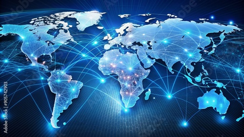 Fototapeta premium Global Network Connections, Digital Map, World Map, Blue Network, Connection,...
